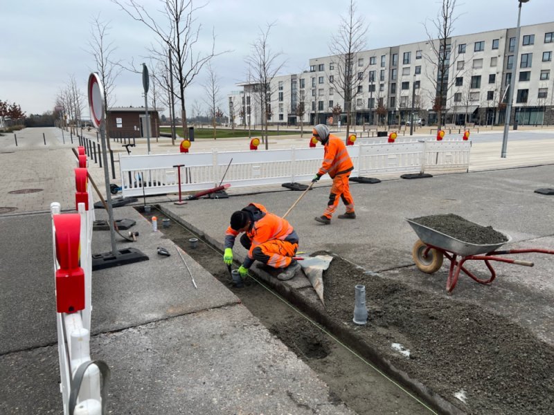 Langer Anger: Straßenumbau schreitet voran - Pollerfundamente werden seit dem 30. Januar gesetzt