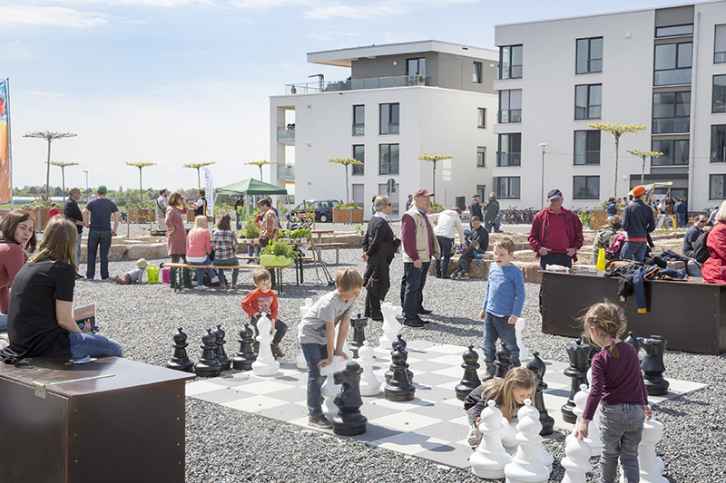 Nach der Eröffnung stellte die Urban Gardening Gruppe ihr Projekt vor. Nach der Devise „Gemüse im Eigenanbau“ werden die drei großen Hochbeete der Pfaffengrunder Terrasse mit Gemüse, Kräutern, Früchten und Blumen gemeinsam bepflanzt. Außerdem gab es viele Mitmachaktionen wie Tischtennis, und Schach sowie Aktionen an der Malwand oder im Spielmobil. Auch die Gewerbeeinheiten rund um die Pfaffengrunder Terrasse öffneten an diesem Tag ihre Türen. Zur Promenade hin fand an der Pfaffengrunder Terrasse ein Krempelflohmarkt statt.