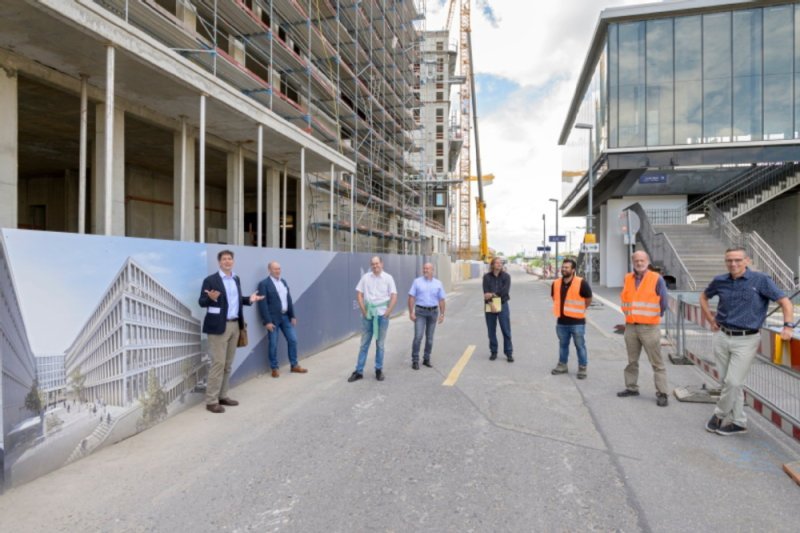 Erster Bürgermeister Jürgen Odszuck besichtigt Querbahnsteig und Ausbau des Max-Planck-Rings / Arbeiten für Kältezentrale in Bahnstadt starten