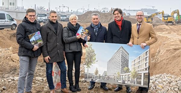Seit Oktober laufen die Erdarbeiten auf den insgesamt rund 24.000 Quadratmeter großen Grundstücken. Dabei werden rund 45.000 Tonnen Erde bewegt, unter anderem für den Aushub der zweigeschossigen Tiefgarage – mit großem Fahrrad-Parkhaus. Dort finden knapp 1.900 Fahrräder Platz. Davon sind etwa 1.000 Stellplätze öffentlich und 870 Fahrradgaragen können angemietet werden. Das soll den Umstieg aufs Rad weiter fördern. Pendler können bequem vom Fernzug oder der Bahn aufs eigene Rad wechseln und den Arbeitsweg zügig fortsetzen. Für Autofahrer gibt es rund 750 Stellplätze. 160 Parkplätze können öffentlich genutzt werden. In der Tiefgarage sind Ladeplätze für Elektroautos geplant.