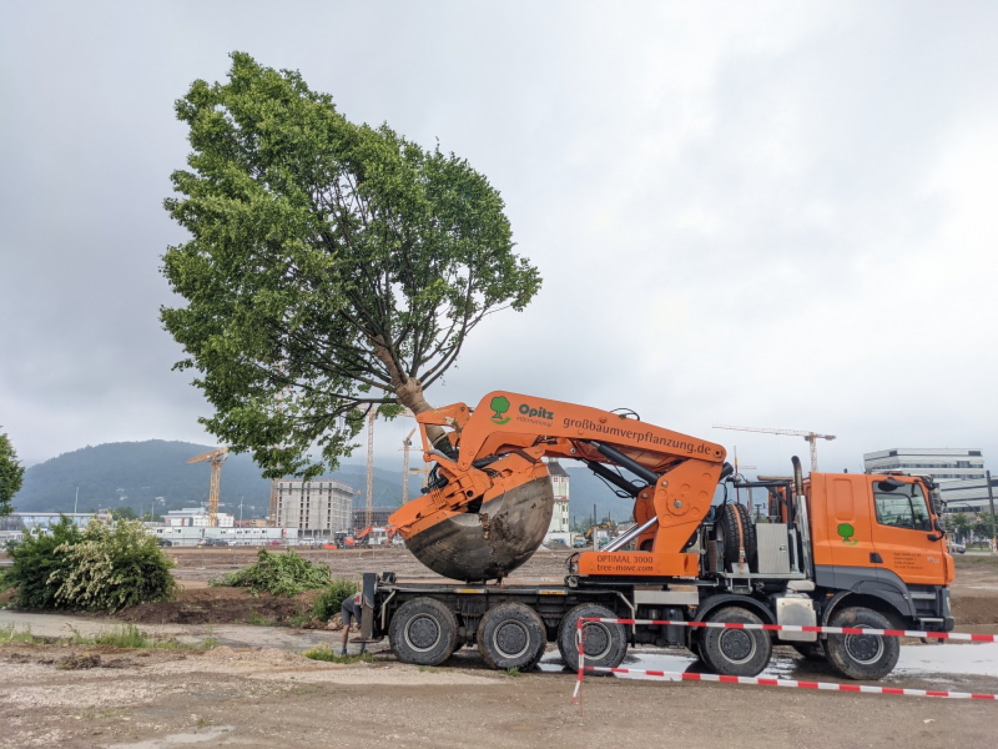 Drei Großbäume sind in der Nacht von Montag auf Dienstag, 7. bis 8. Juni 2021, verpflanzt und in einer technisch aufwändigen Aktion an die Bahnstadt-Promenade versetzt wurden. Die Verpflanzung, die mittels einer Spezialmaschine stattfand, verlief reibungslos. Die drei Linden sind jeweils etwa 15 Tonnen schwer und rund 12 Meter hoch. Westlich des Stellwerks 8 im Bereich der Kumamotostraße sollen die Linden, die als gesund und vital gelten, nun gut anwachsen. Die etwa 40 Jahre alten Bäume haben an ihrem neuen Standort noch eine lange Lebenserwartung.