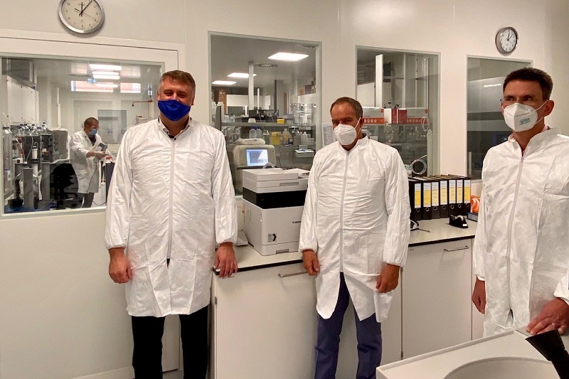 Zu Besuch in der Bahnstadt waren Oberbürgermeister Professor. Dr. Eckart Würzner und Marc Massoth, Leiter des Amtes für Wirtschaftsförderung und Wissenschaft, bei der AGC Biologics GmbH.