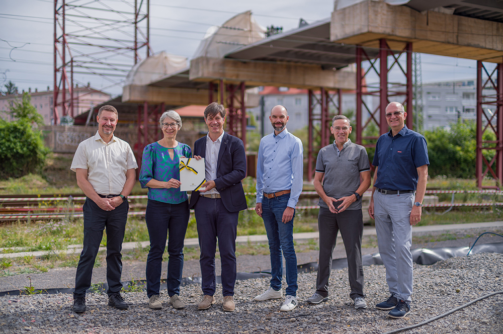 Staatssekretärin Elke Zimmer hat den Förderbescheid des Landes Baden-Württemberg in Höhe von 13,75 Millionen Euro am Freitag, 26. Juli 2024, an Jürgen Odszuck, Erster Bürgermeister der Stadt Heidelberg für Stadtentwicklung und Bauen, übergeben. Die Gesamtkosten betragen rund 19 Millionen Euro.