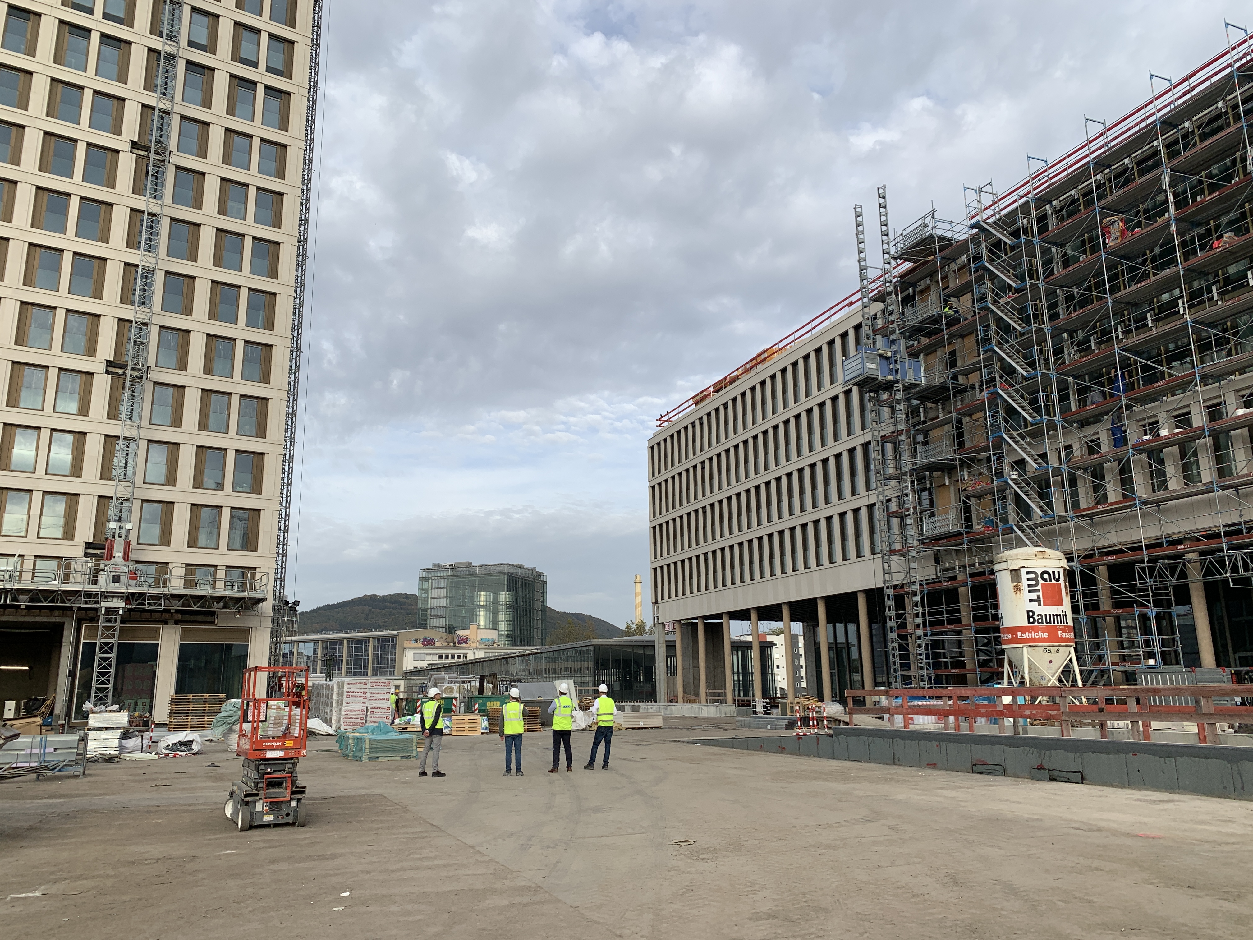 Die Stadt Heidelberg erhält ein neues Stadtentree direkt am Hauptbahnhof. Auf rund 24.000 Quadratmetern entstehen der neue Europaplatz und fünf Gebäude. Diese umfassen einen Mix aus Wohnen und Arbeiten, Geschäften und Gastronomie sowie ein Vier-Sterne-Hotel. Im jungen Passivhaus-Stadtteil Bahnstadt gelegen, werden auch diese nach dem strengen Energieeffizienz-Standard „Passivhaus“ errichtet. Auf der Großbaustelle mit ihrer komplexen Organisation und Logistik sind die Arbeiten weit fortgeschritten: Die ersten Gebäude sollen im zweiten Quartal 2023 bezugsfertig sein. Bauherr ist die Gustav Zech Stiftung, die insgesamt rund 300 Millionen Euro investiert. Im Oktober 2022 hat die Stadt Heidelberg die Arbeiten an der Platzfläche selbst begonnen. Der rund 8.800 Quadratmeter große Europaplatz wird künftig der zweitgrößte Platz Heidelbergs nach der Pfaffengrunder Terrasse in der Bahnstadt.
