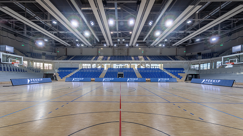 - Verschiebbare Teleskoptribünenanlagen ermöglichen Spielfelder mit variablen Abmessungen.