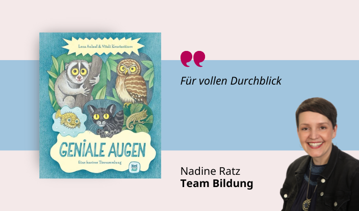 Ein kurzweiliges und informatives illustriertes Kindersachbuch über die unterschiedlichen Eigenschaften und Funktionen von Tieraugen. In 10 Rubriken wie „Riesenaugen“, „Vielaugen“ oder „Geschmückte Augen“ werden unterschiedliche Tiere mit ihren erstaunlichen Augen vorgestellt. Man erfährt zum Beispiel, dass der Koboldmaki im Verhältnis zum Körper die größten Säugetieraugen hat und Pandas sich anhand der individuellen Flecken um die Augen herum zuverlässig wiedererkennen können. Neben diesen laden noch unzählige weitere erstaunliche und kuriose Fakten rund um die faszinierenden Tieraugen zum Schmökern und Entdecken ein.