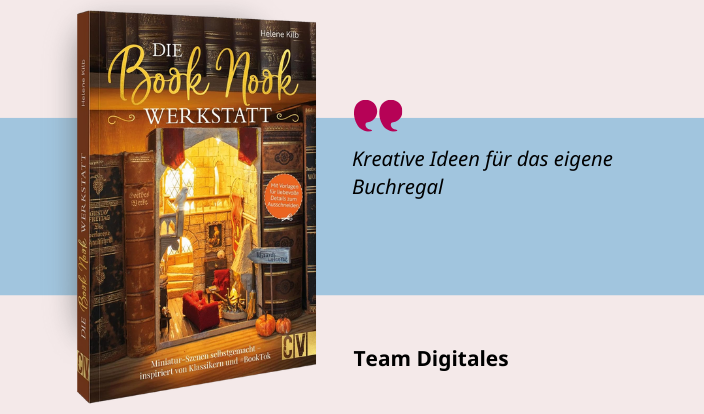 Selbstgebastelte Miniaturszenen zwischen den eigenen Büchern verschönern das eigene Regal zu Hause. Dazu gibt es in dem Buch Schritt für Schritt Anleitungen für 10 Szenen aus bekannten Büchern. Ergänzende Detailfotos helfen bereits Anfänger*innen. Die benötigten Materialien sind einfach zu beschaffen.
